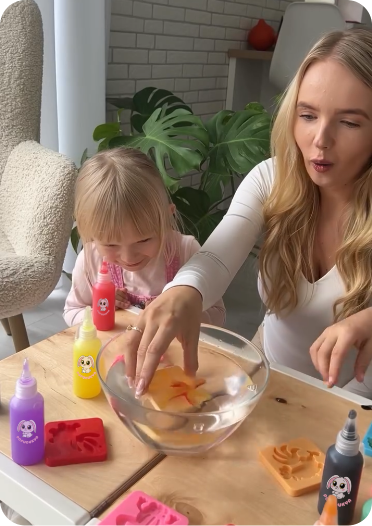 Başlangıçta 5 yaşındaki çocuğum için almıştım ve kendim de oynamaya devam ettim. Sadece iki toz paketiyle geliyor, su ile karıştırdıktan sonra o suyu dökmeden kapalı kapta saklayıp defalarca kullanabilirsiniz. 1 puanı bunu belirtmedikleri için kırdım