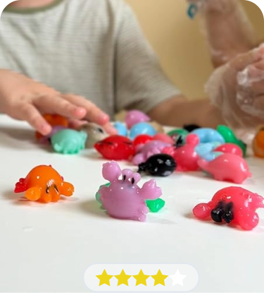 Ailecek yapılacak eğlenceli bir oyun seti. Bu arada kalıplara jeli fazla dökünce tombik oluyorlar o yüzden siz az ekleyerek yaparsanız iyi olur. Bunu belirtmemişler o yüzden 1 puan kırdım